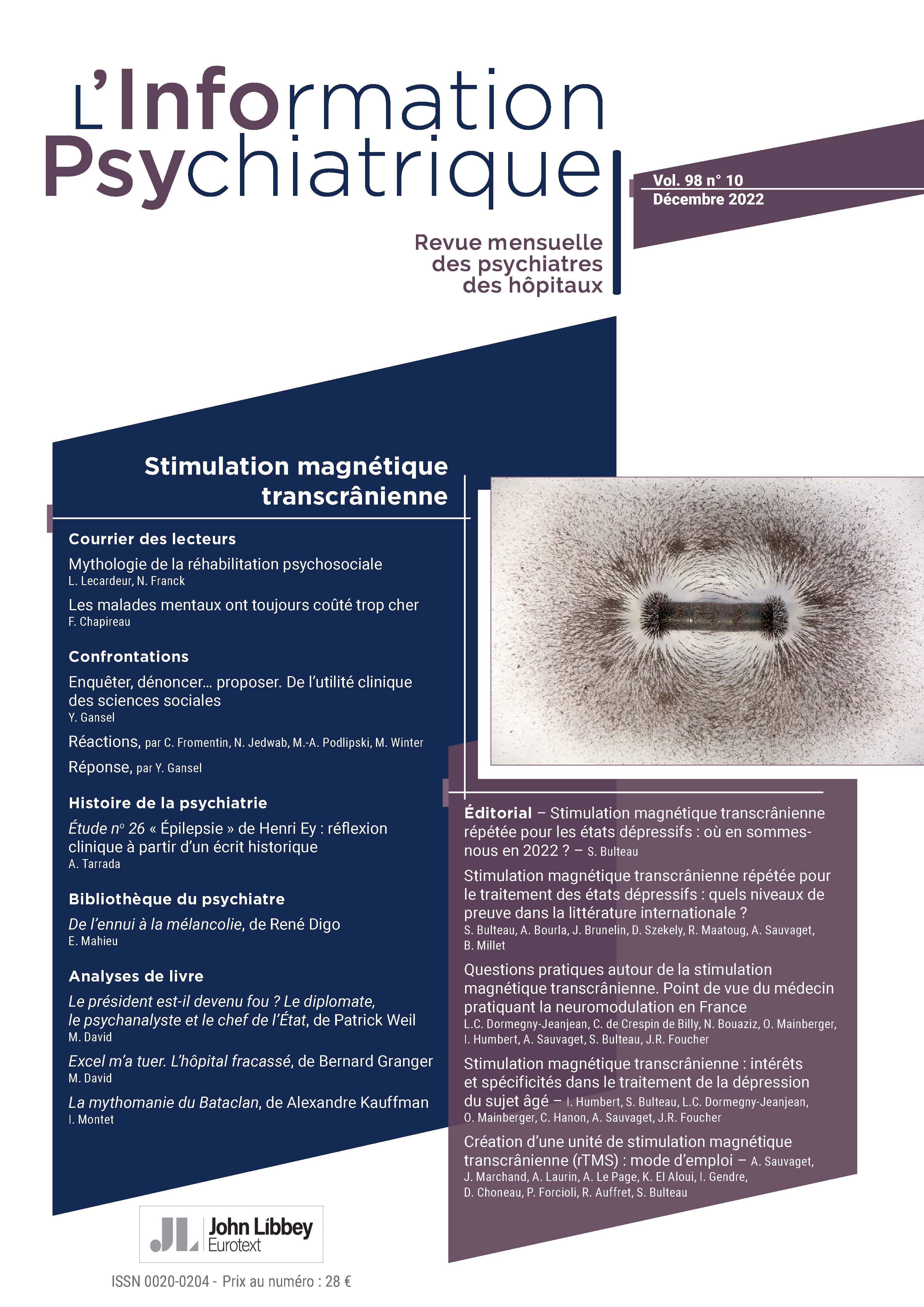 En décembre parait un numéro spécial de la revue « l’Information Psychiatrique » (la revue des psychiatres[…]